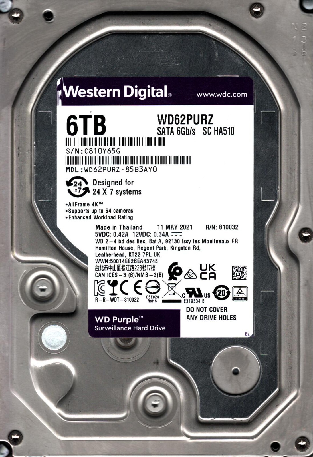 WD62PURZ-85B3AY0 S/N: C810Y WESTERN DIGITAL 6TB THAILAND MAY 2021
