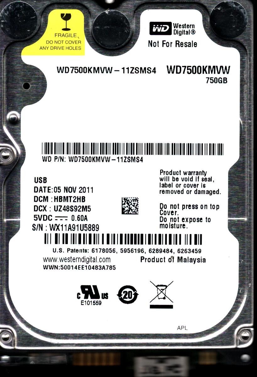 WD7500KMVW-11ZSMS4 S/N:WX11A DCM:HBMT2HB WESTERN DIGITAL 750GB MALAYSIA NOV 2011