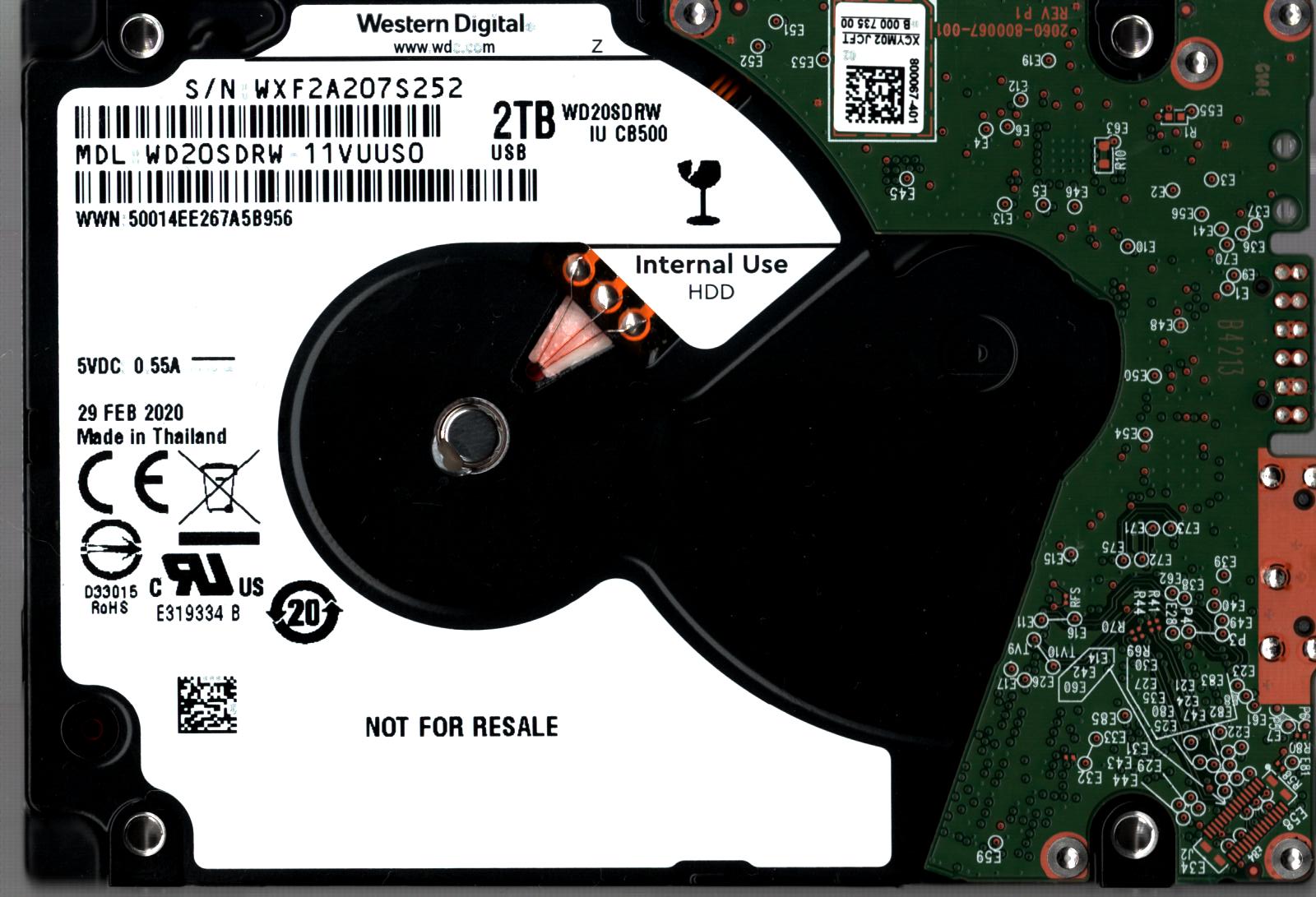 WD20SDRW-11VUUS0 S/N: WXF2A WESTERN DIGITAL 2TB THAILAND FEB 2020