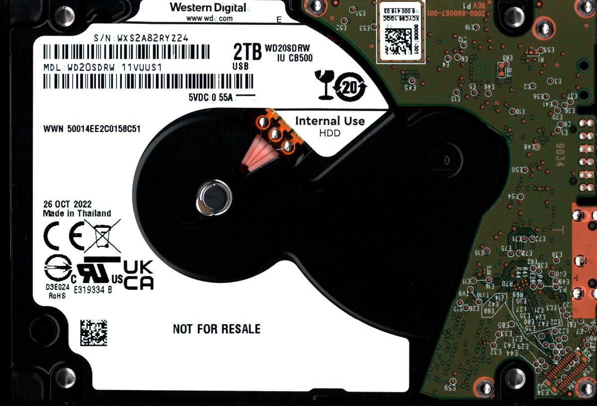 WD20SDRW-11VUUS1 S/N: WXS2A WESTERN DIGITAL 2TB THAILAND OCT 2022