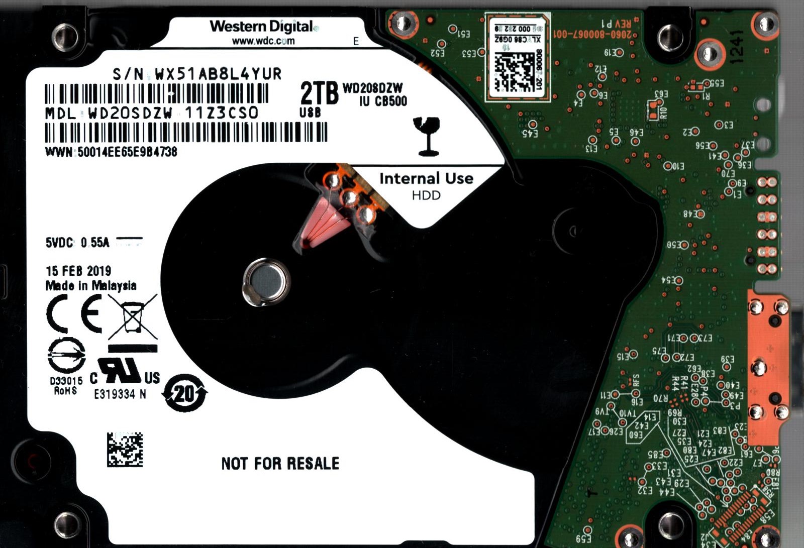 WD20SDZW-11Z3CS0 S/N: WX51A WESTERN DIGITAL 2TB MALAYSIA FEB 2019