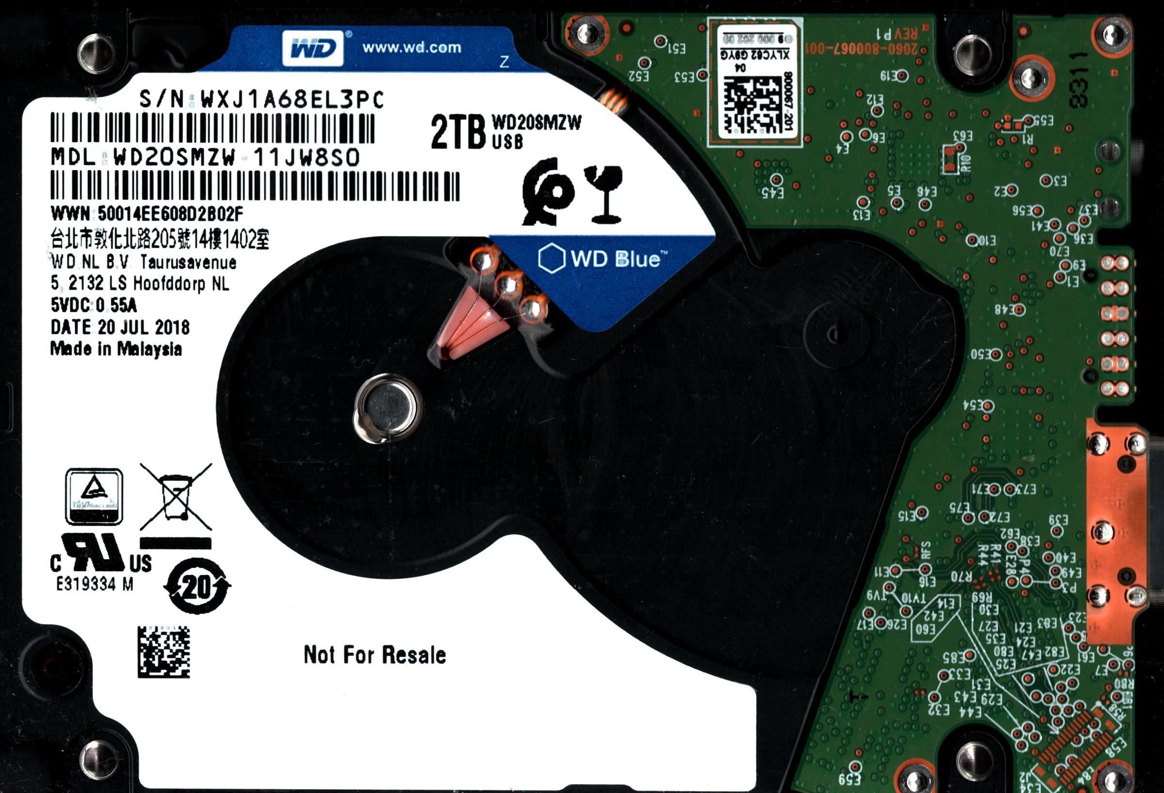 WD20SMZW-11JW8S0 S/N: WXJ1A WESTERN DIGITAL 2TB MALAYSIA JUL 2018