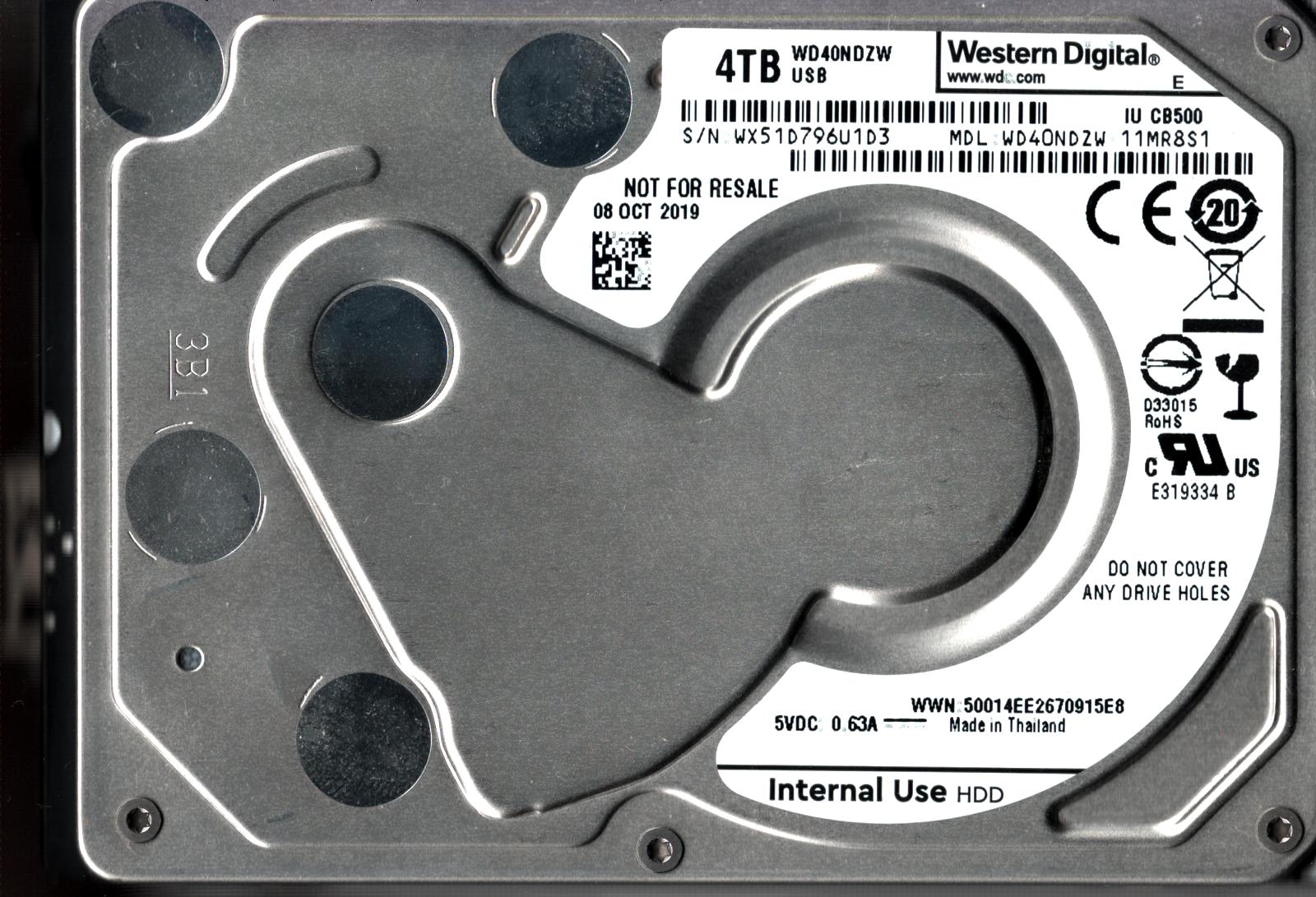 WD40NDZW-11MR8S1 S/N: WX51D WESTERN DIGITAL 4TB THAILAND OCT 2019