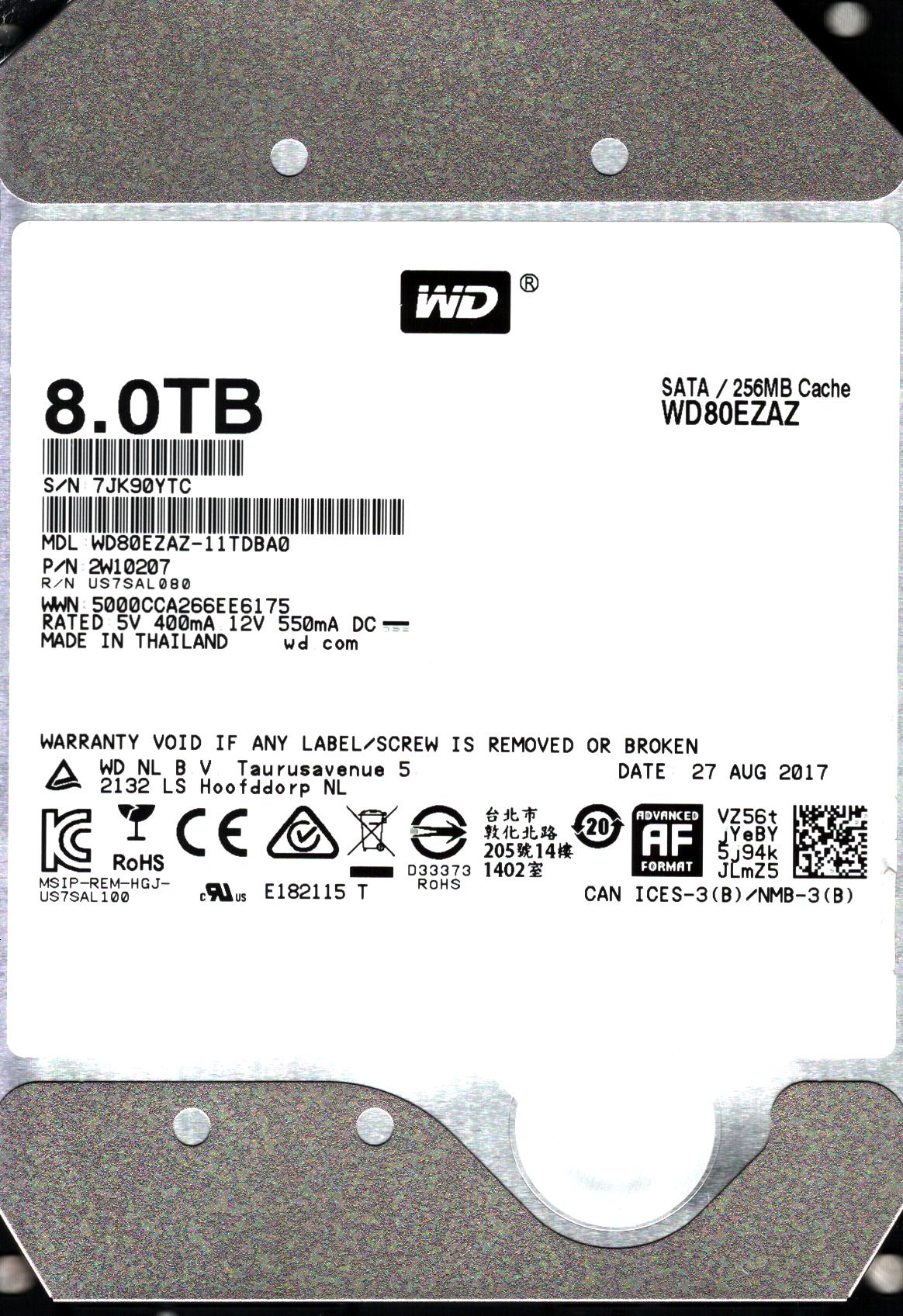 WD80EZAZ-11TDBA0 S/N: 7JK90 WESTERN DIGITAL 8TB THAILAND AUG 2017