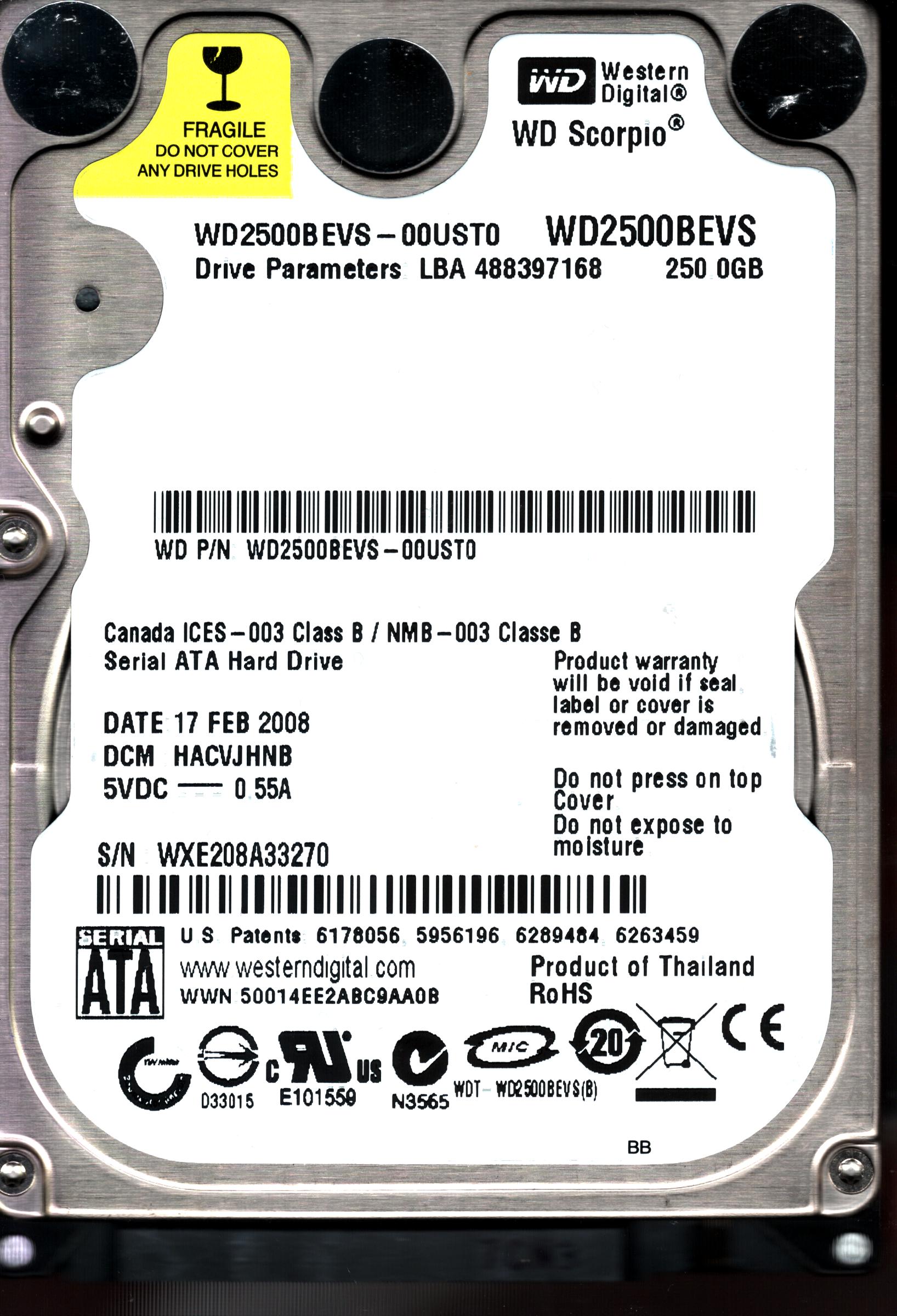 WD2500BEVS-00UST0 S/N: WXE20 HACVJHNB WESTERN DIGITAL THAILAND FEB 2008