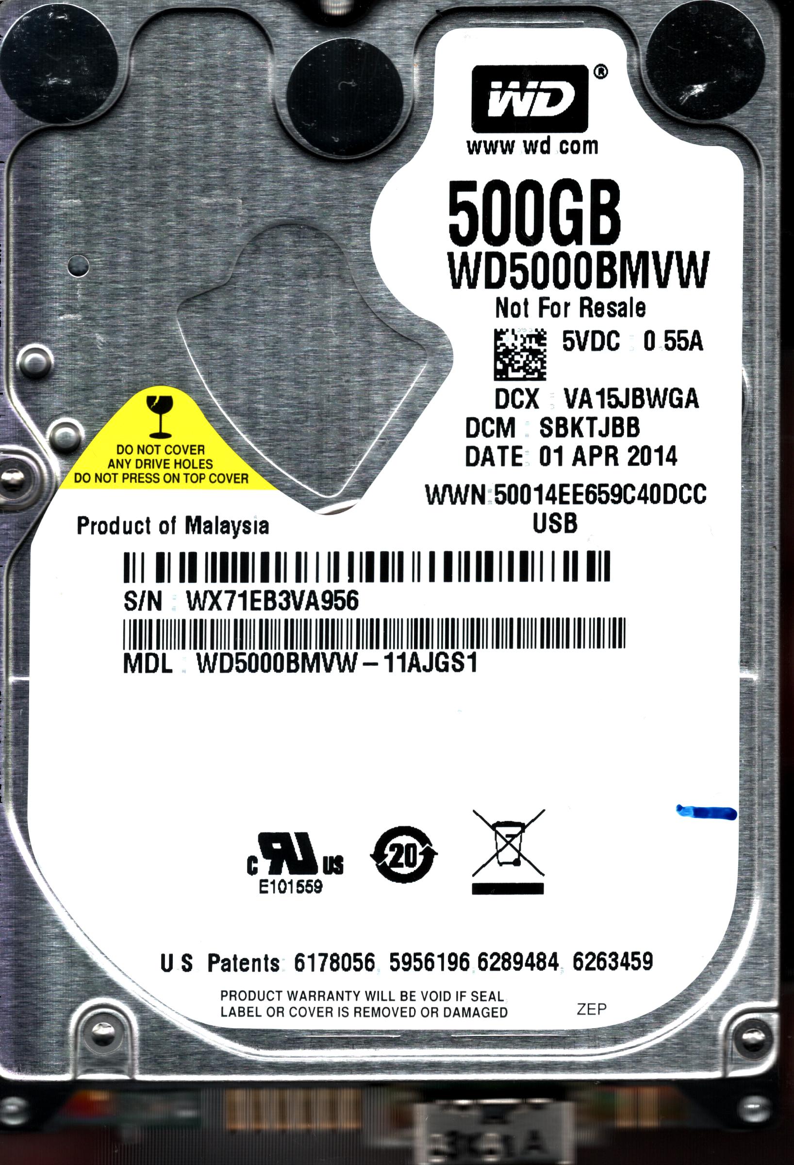WD5000BMVW-11AJGS1 S/N: WX71E SBKTJBB WESTERN DIGITAL 500GB MALAYSIA APR 2014