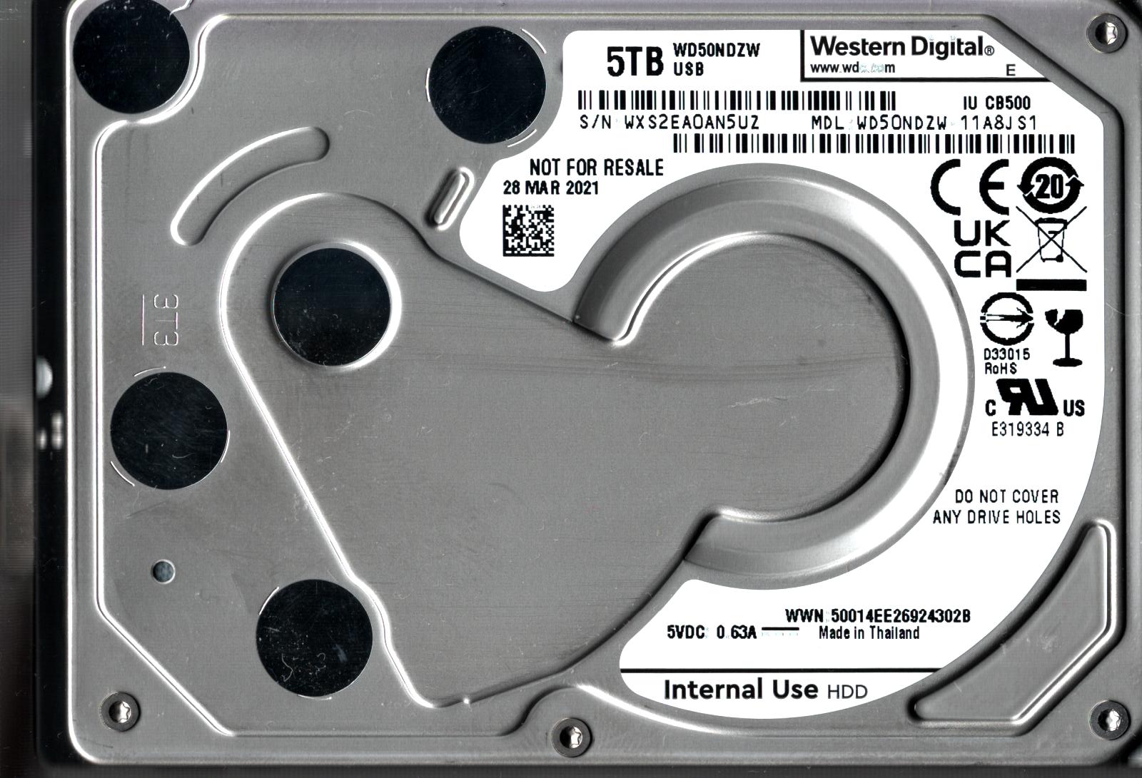 WD50NDZW-11A8JS1 S/N: WXS2E WESTERN DIGITAL 5TB THAILAND MAR 2021