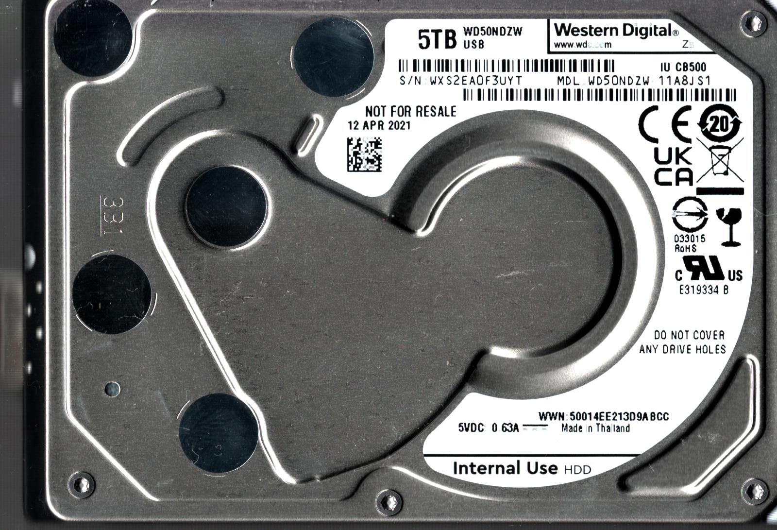 WD50NDZW-11A8JS1 S/N: WXS2E WESTERN DIGITAL 5TB THAILAND APR 2021