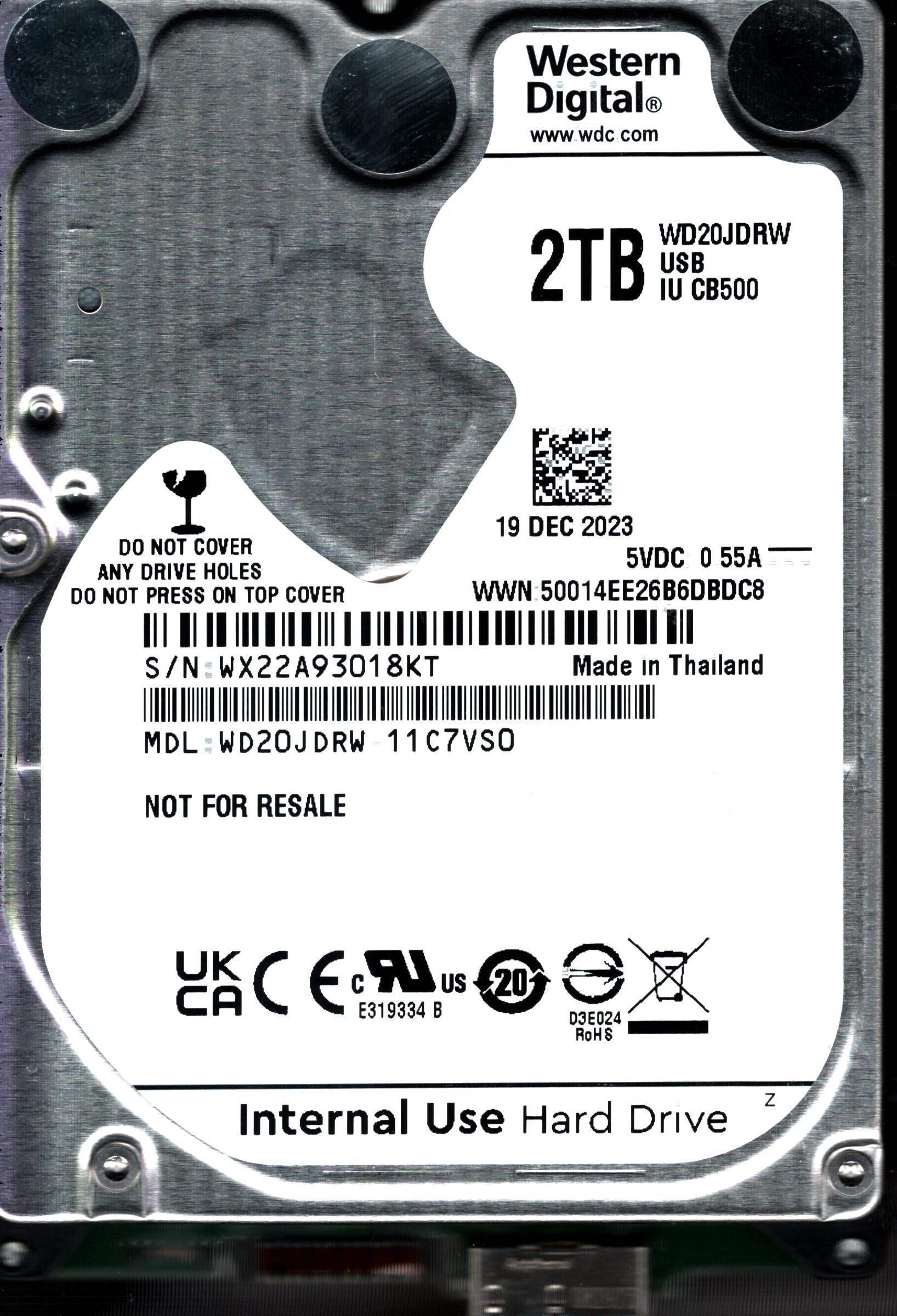 WD20JDRW-11C7VS0 S/N: WX22A WESTERN DIGITAL 2TB THAILAND DEC 2023