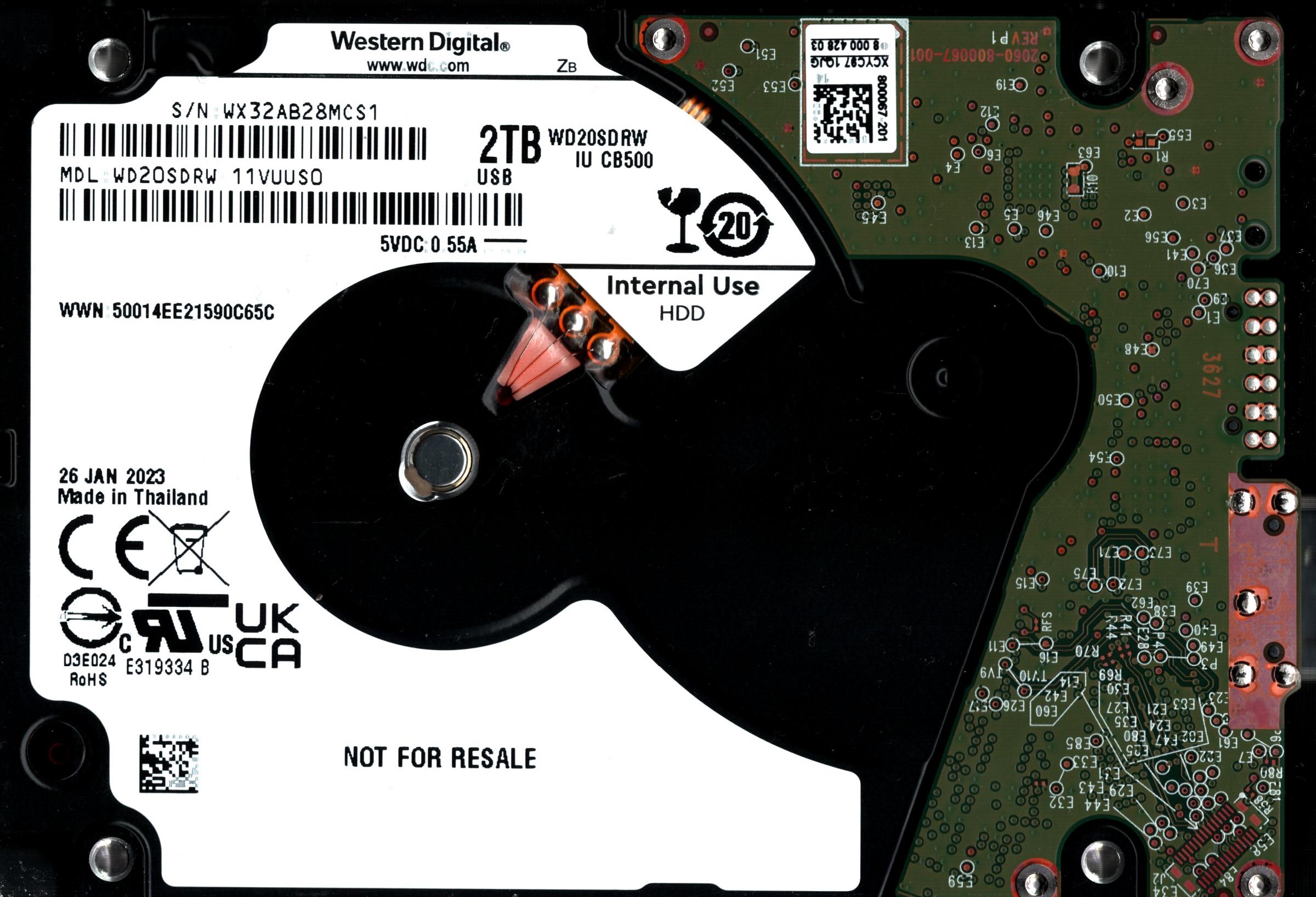 WD20SDRW-11VUUS0 S/N: WX32A WESTERN DIGITAL 2TB THAILAND JAN 2023