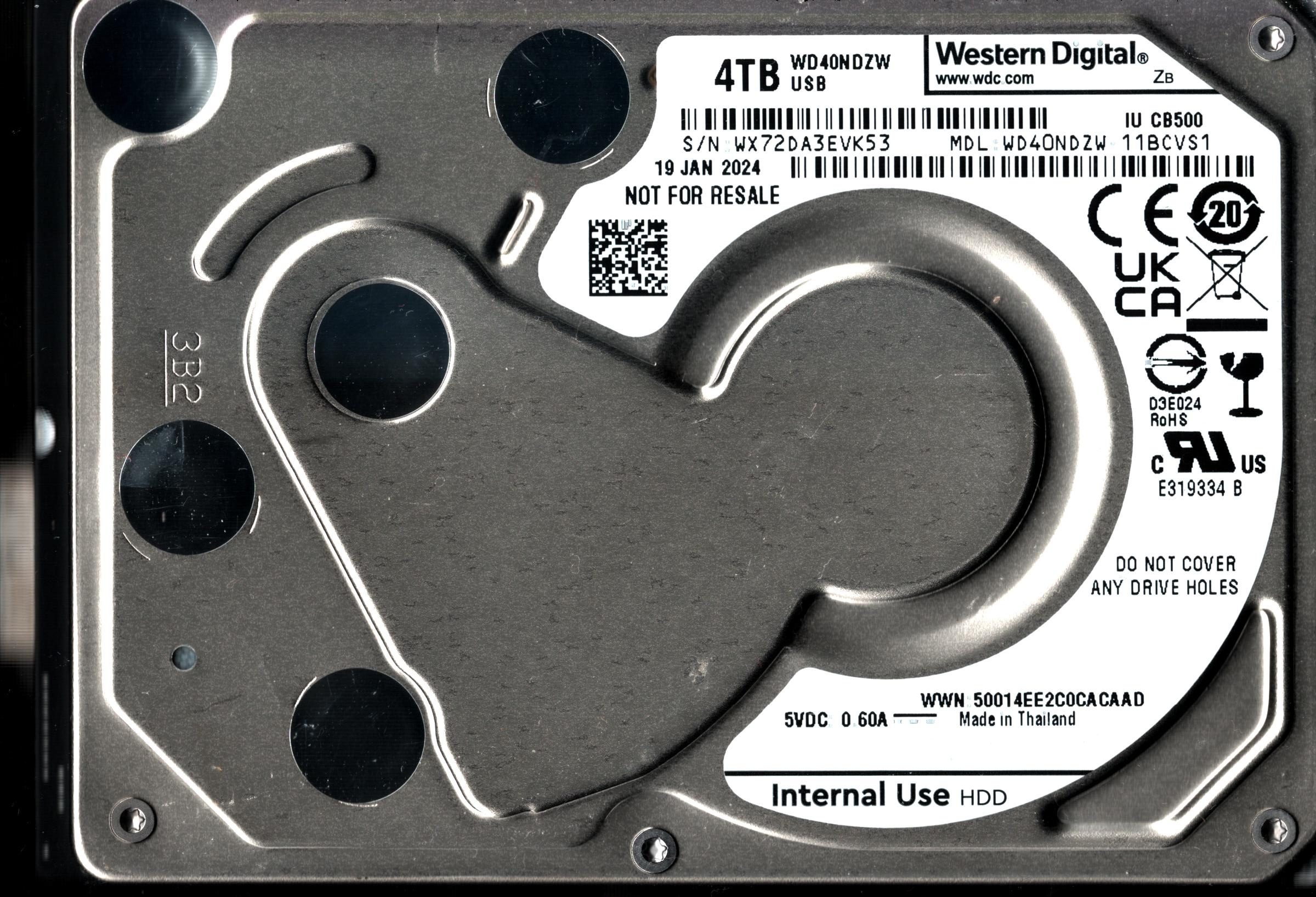 WD40NDZW-11BCVS1 S/N: WX72D WESTERN DIGITAL 4TB THAILAND JAN 2024