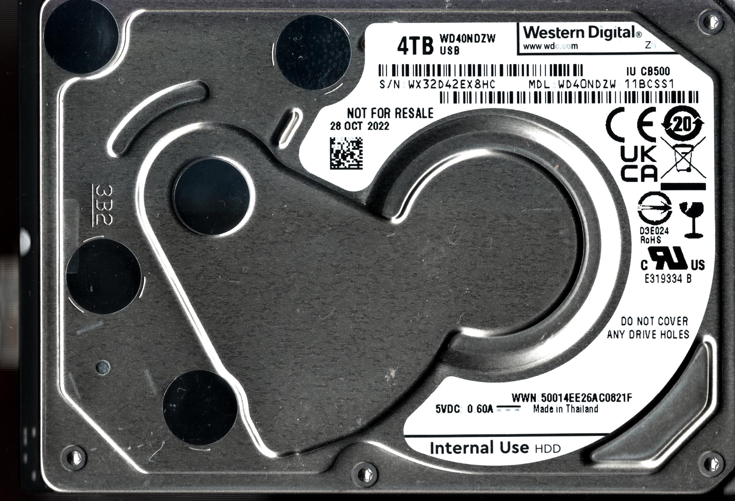 WD40NDZW-11BHVS1 S/N: WX82D WESTERN DIGITAL 4TB THAILAND MAY 2022