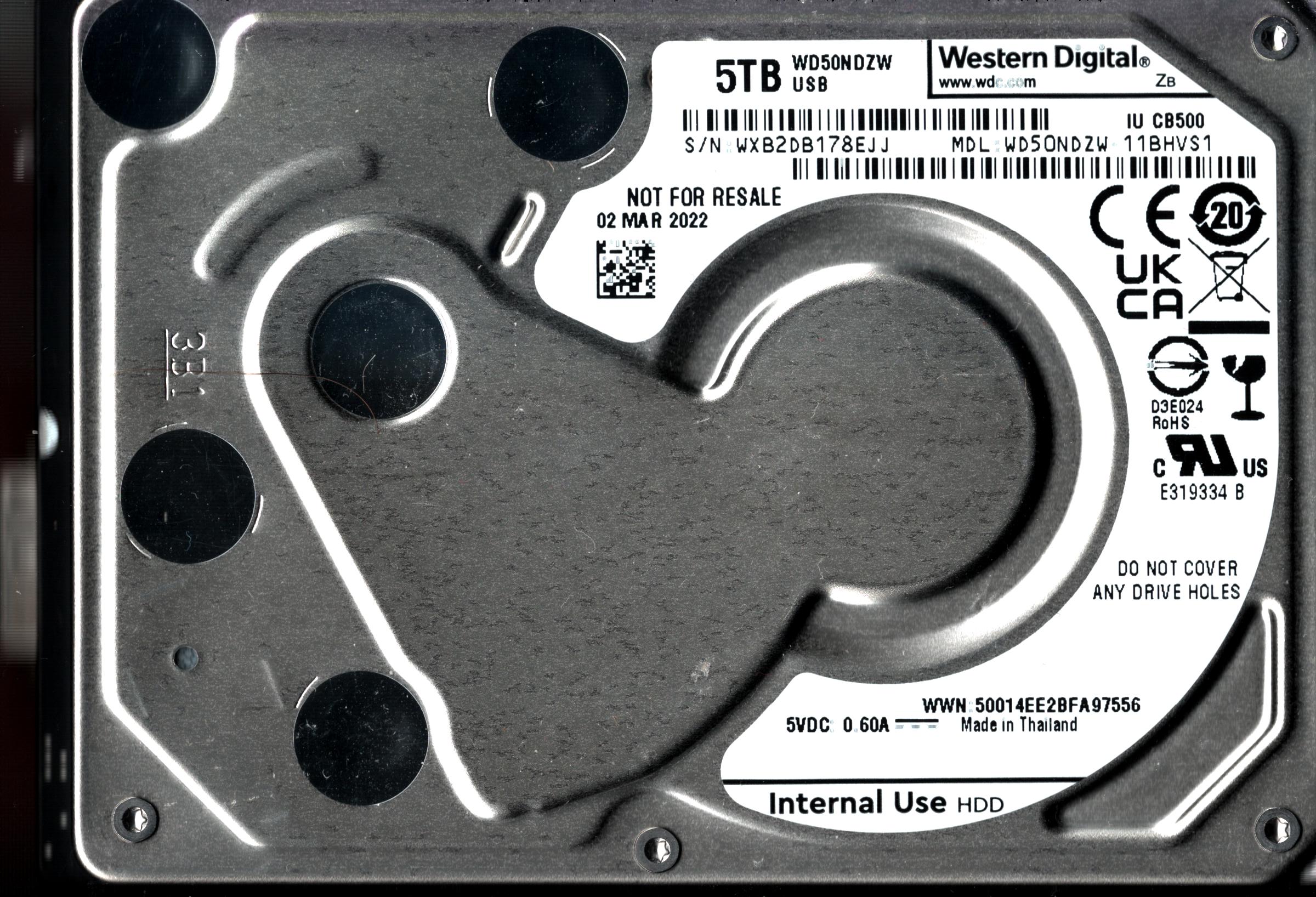 WD50NDZW-11BHVS1 S/N: WXB2D WESTERN DIGITAL 5TB THAILAND MAR 2022