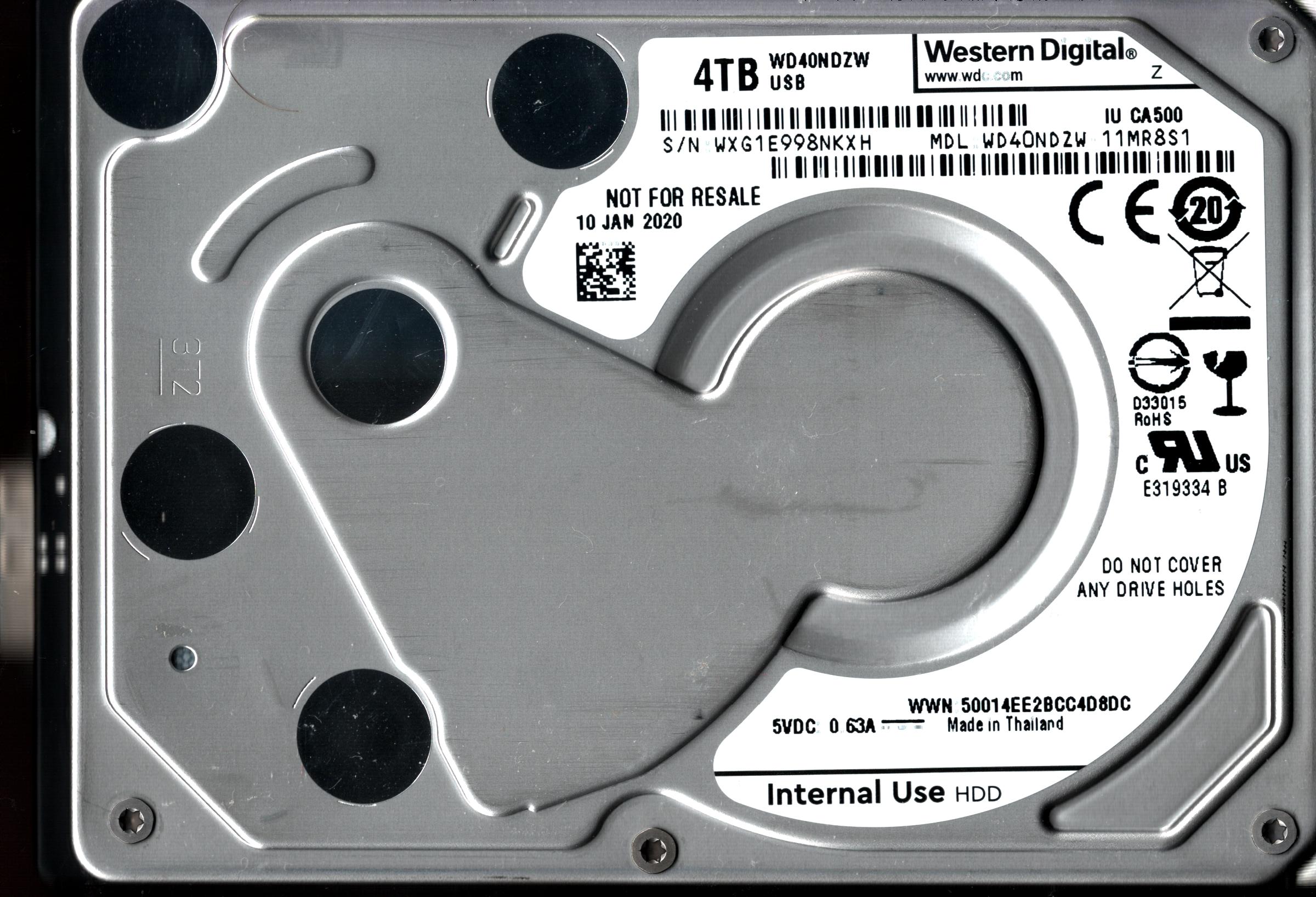 WD40NDZW-11MR8S1 S/N: WX32D WESTERN DIGITAL 4TB THAILAND MAR 2020