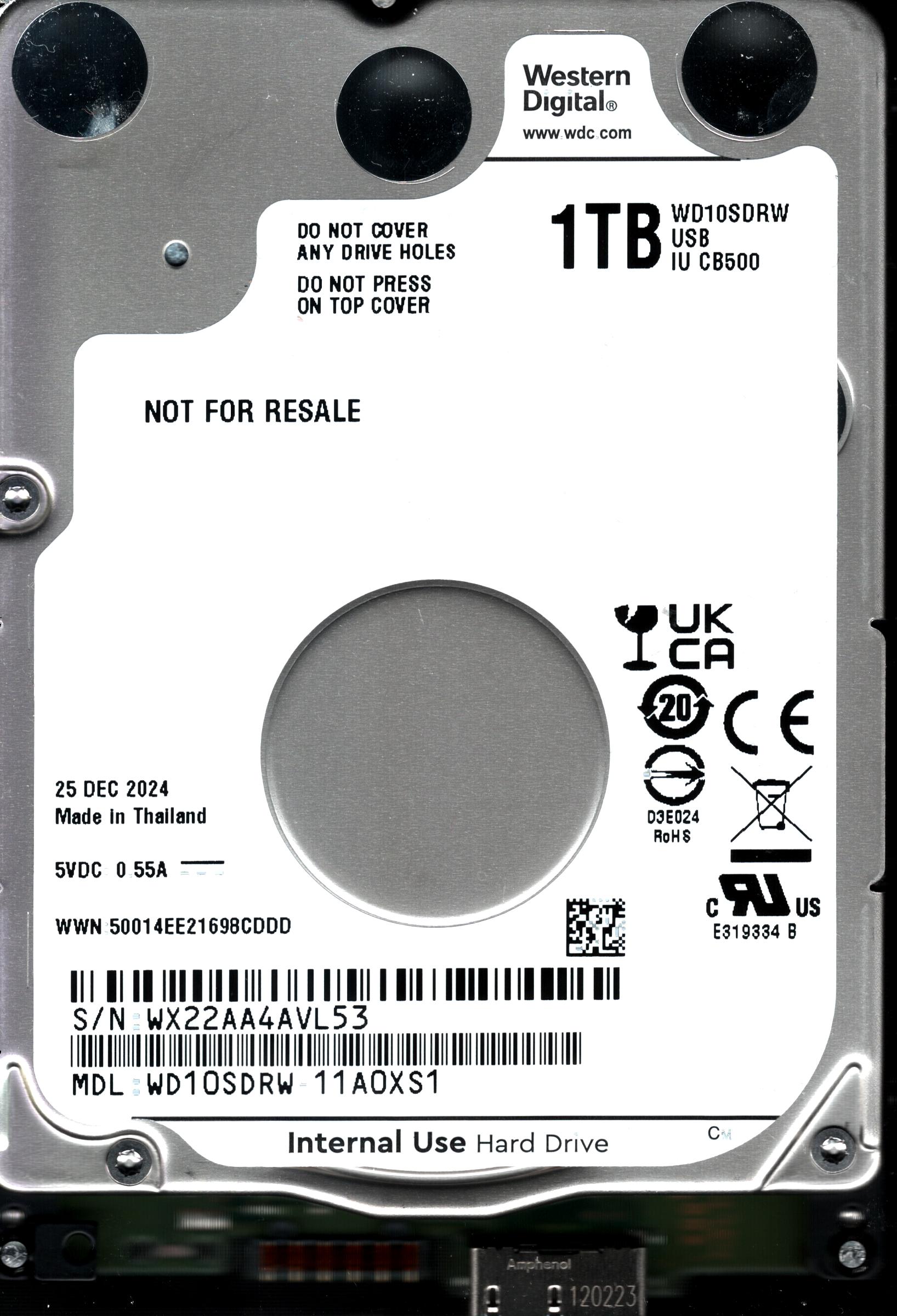 WD10SDRW-11A0XS1 S/N: WX22A WESTERN DIGITAL 1TB THAILAND DEC 2024