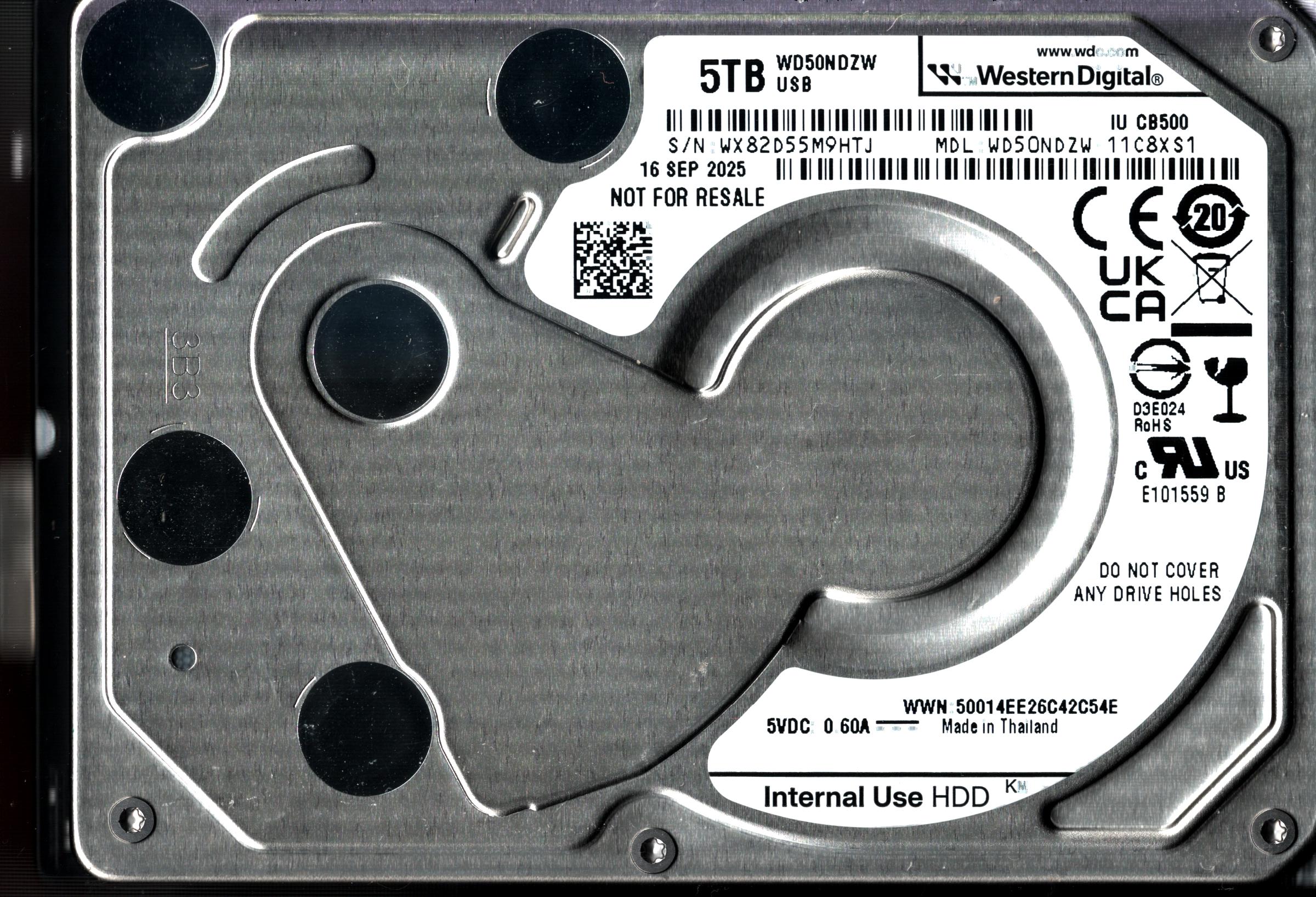 WD50NDZW-11C8XS1 S/N: WX82D WESTERN DIGITAL 5TB THAILAND SEP 2025