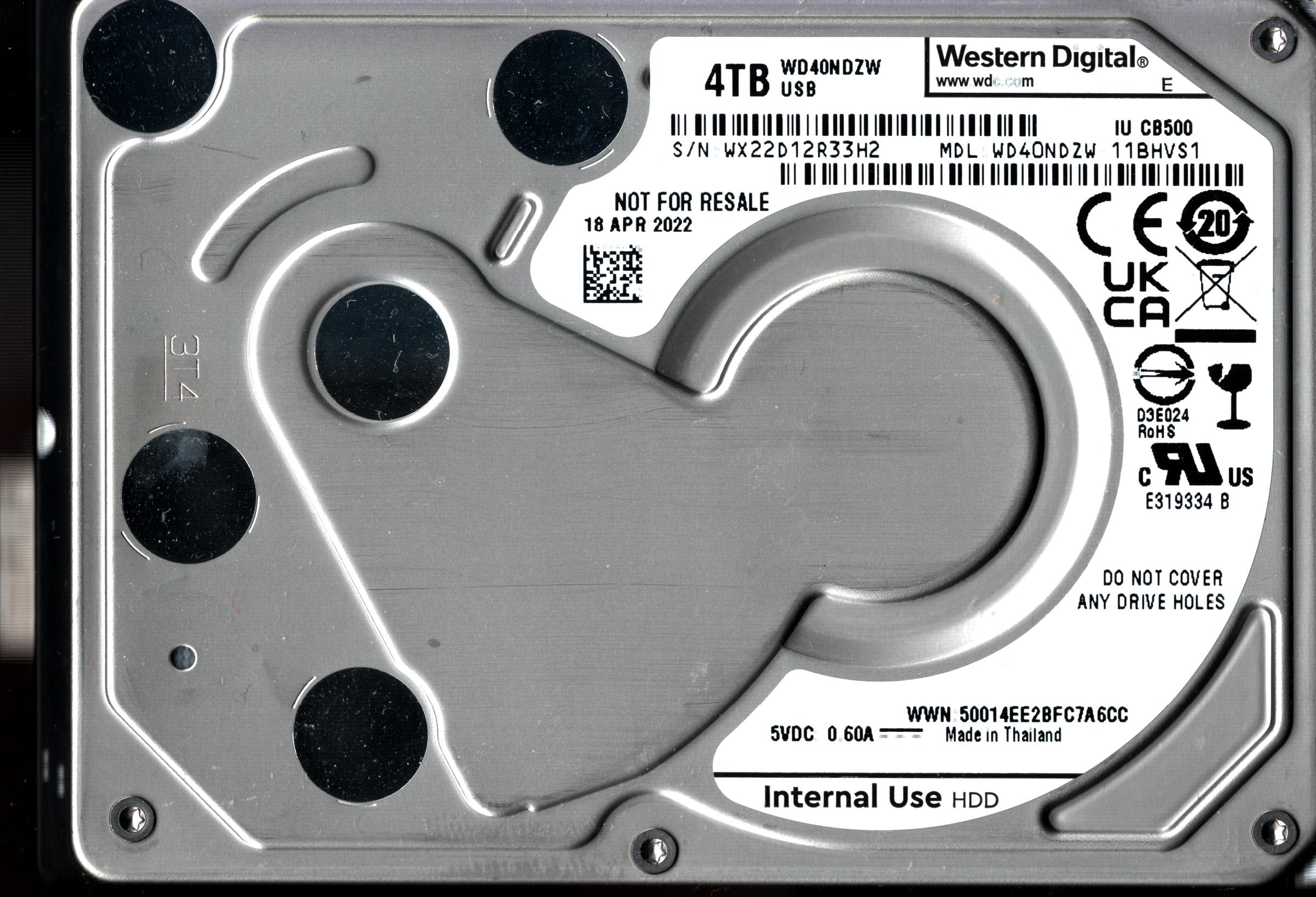 WD40NDZW-11BHVS1 S/N: WX22D WESTERN DIGITAL 4TB THAILAND APR 2022