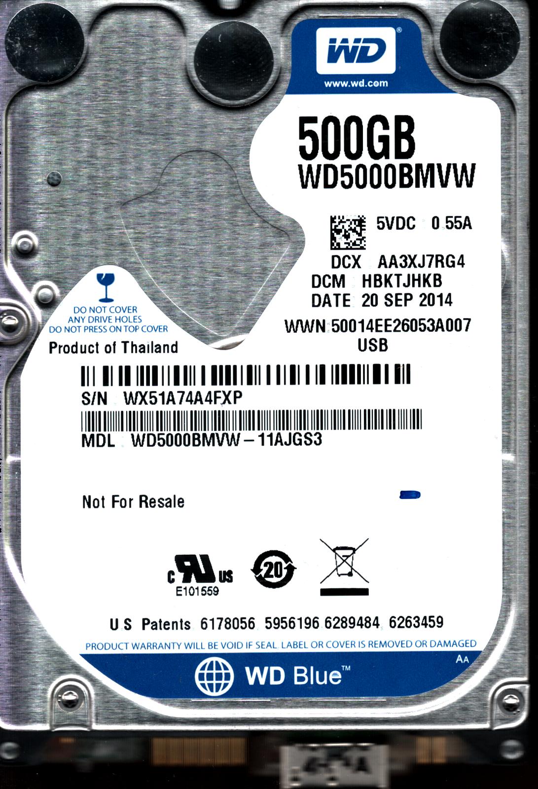 WD5000BMVW-11AJGS3 S/N: WX51A HBKTJHKB WESTERN DIGITAL 500GB THAILAND SEP 2014
