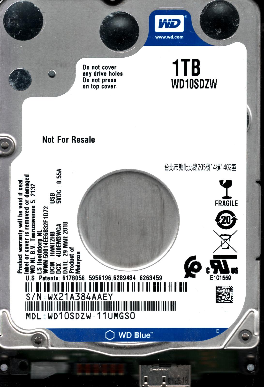 WD10SDZW-11UMGS0 S/N: WX21A HANT2HB WESTERN DIGITAL 1TB MALAYSIA MAR 2018