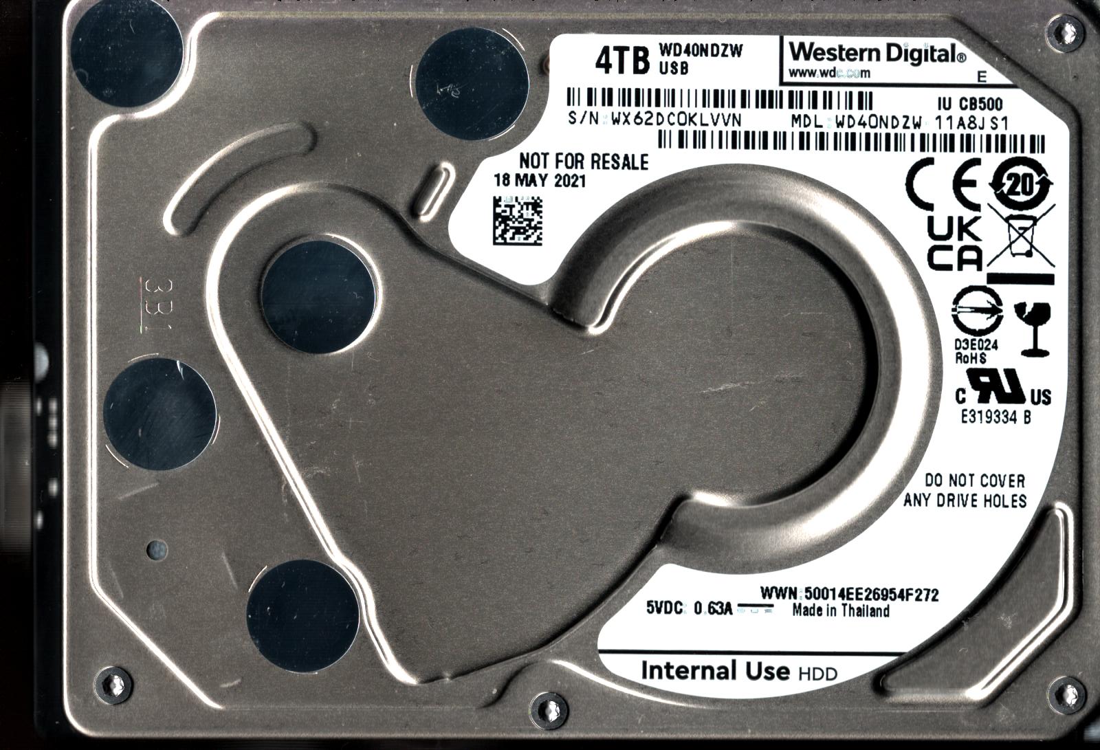 WD40NDZW-11A8JS1 S/N: WX62D WESTERN DIGITAL 4TB THAILAND MAY 2021