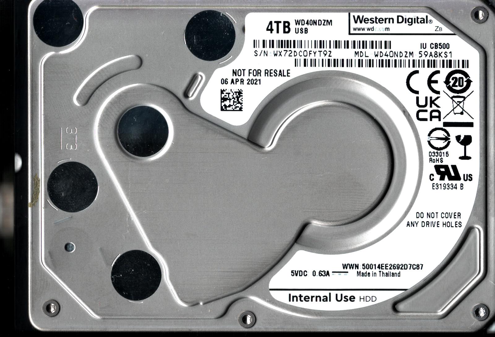 WD40NDZM-59A8KS1 S/N: WX72D WESTERN DIGITAL 4TB THAILAND APR 2021