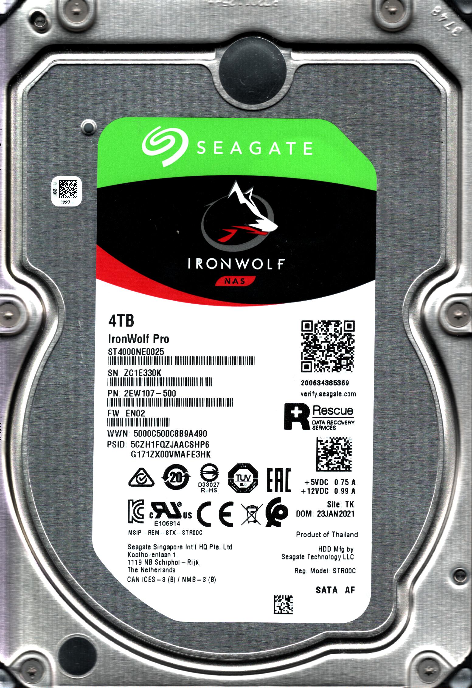ST4000NE0025 P/N: 2EW107-500 F/W: EN02 S/N: ZC1E3 4TB JAN 2021 THAILAND