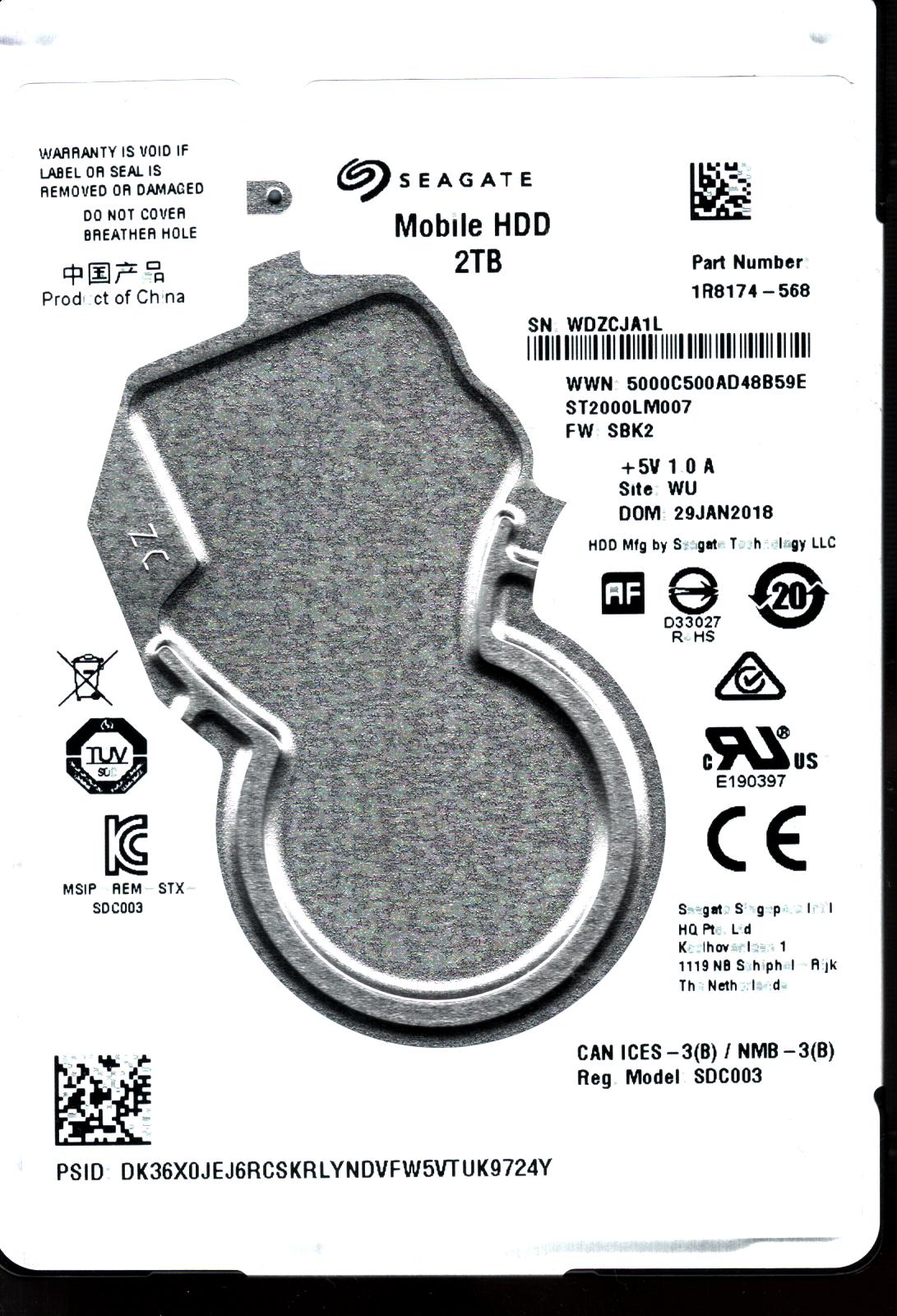 ST2000LM007 P/N: 1R8174-568 F/W: SBK2 S/N: WDZCJ 2TB JAN 2018 CHINA SEAGATE